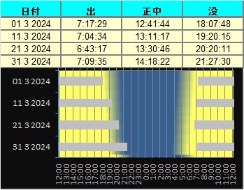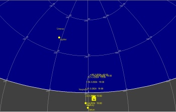 日付 時刻 方角 高度(度) イベント 13 22 西 15 木星が月に接近(間隔3.5度) 17 海王星が太陽と合 20 春分 24 水星が東方最大離角 25 半影月食(欧州からは観望不可)