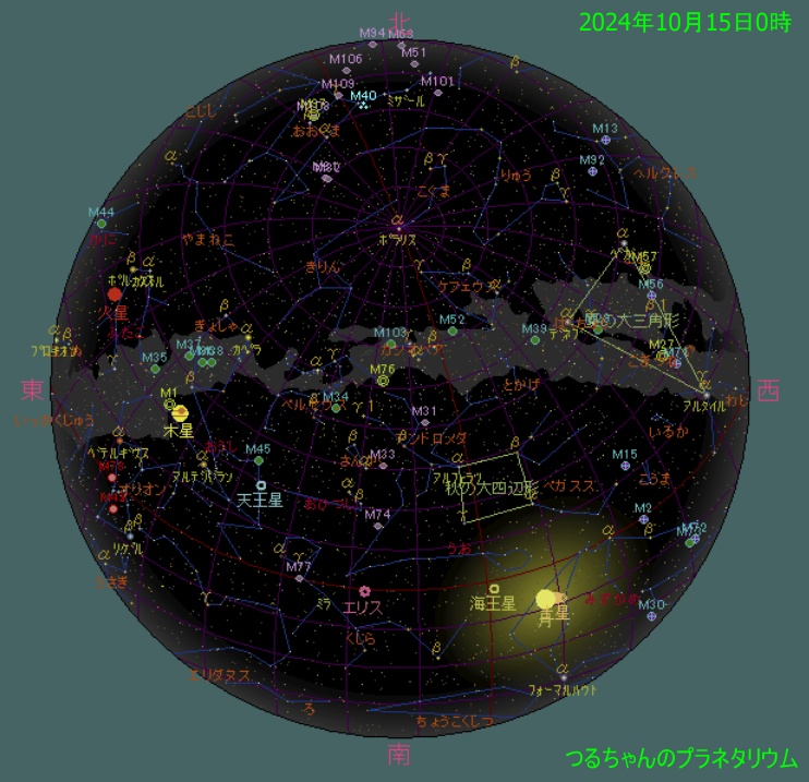 10月15日0時頃の空 現在の空 www.heavens-above.com