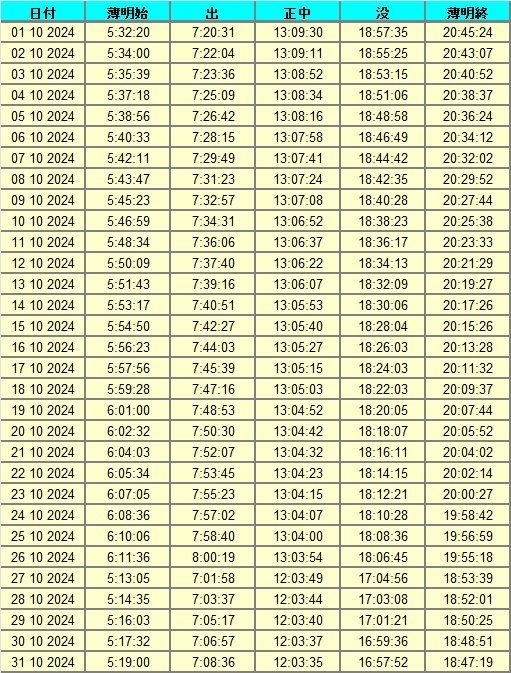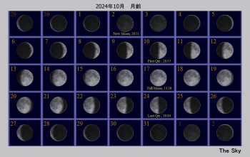 日付 時刻 方角 高度(度) イベント 2 金環食(欧州からは観望不可) 5 18:00 南西 10度 金星が月に接近(間隔3.7度) 8 ジャコビニ流星群極大 12 ツチンシャン・アトラス彗星 最大光度(C/2023 A3) ![]()