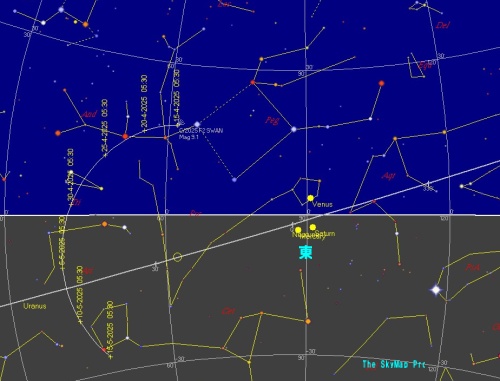 8.1〜8.3等級まで明るくなり、明け方の空にアンドロメダ座に近く見えだしました。