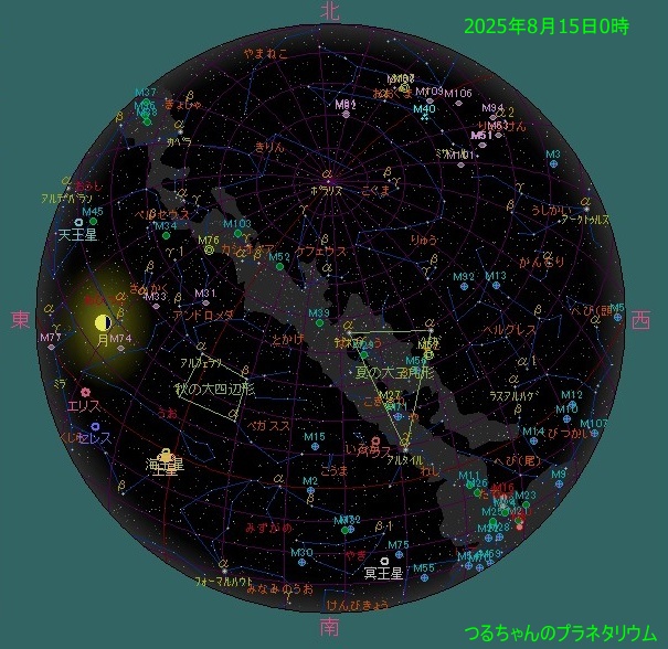 8月15日0時頃の空 現在の空 www.heavens-above.com