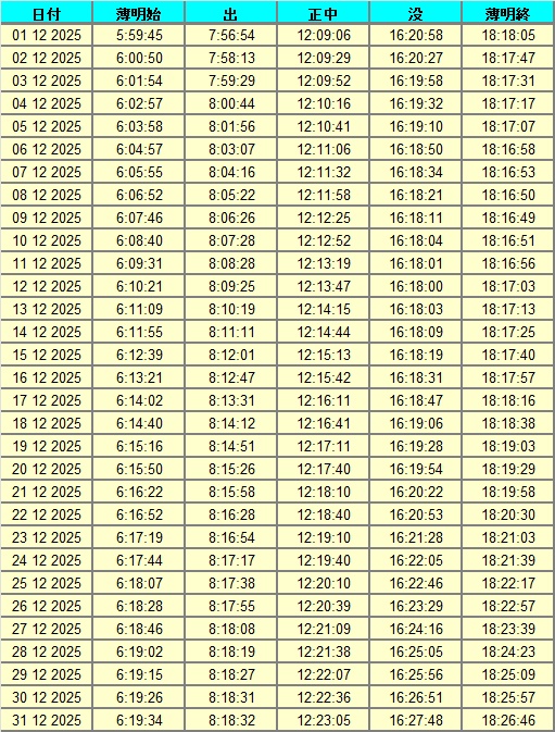 日出、日没